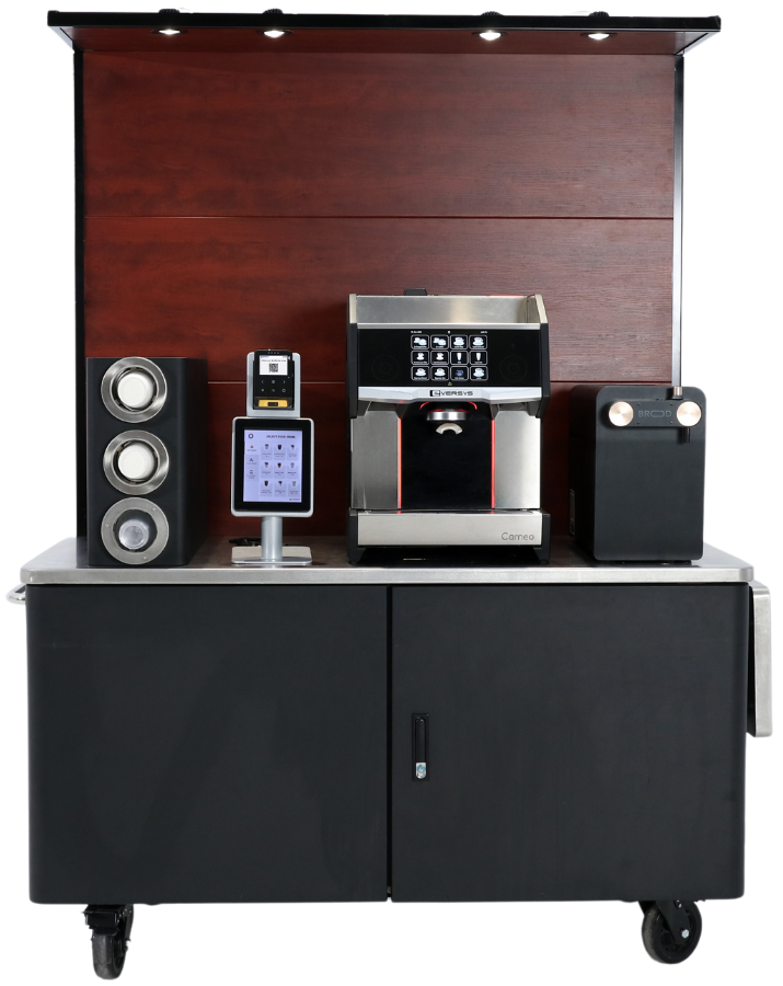 The Solo Cart is a compact, countertop self-serve unit that effortlessly brings the full café experience to the most limited spaces. Tailor your beverage selection by opting for hot espresso, cold coffee, or both options, ensuring that your users can enjoy their preferred drink without compromise.
