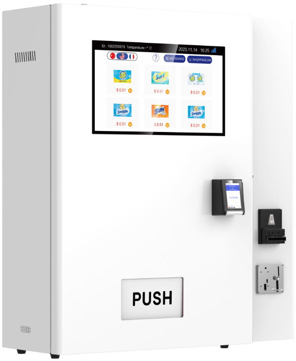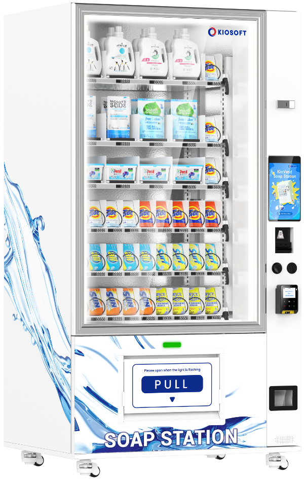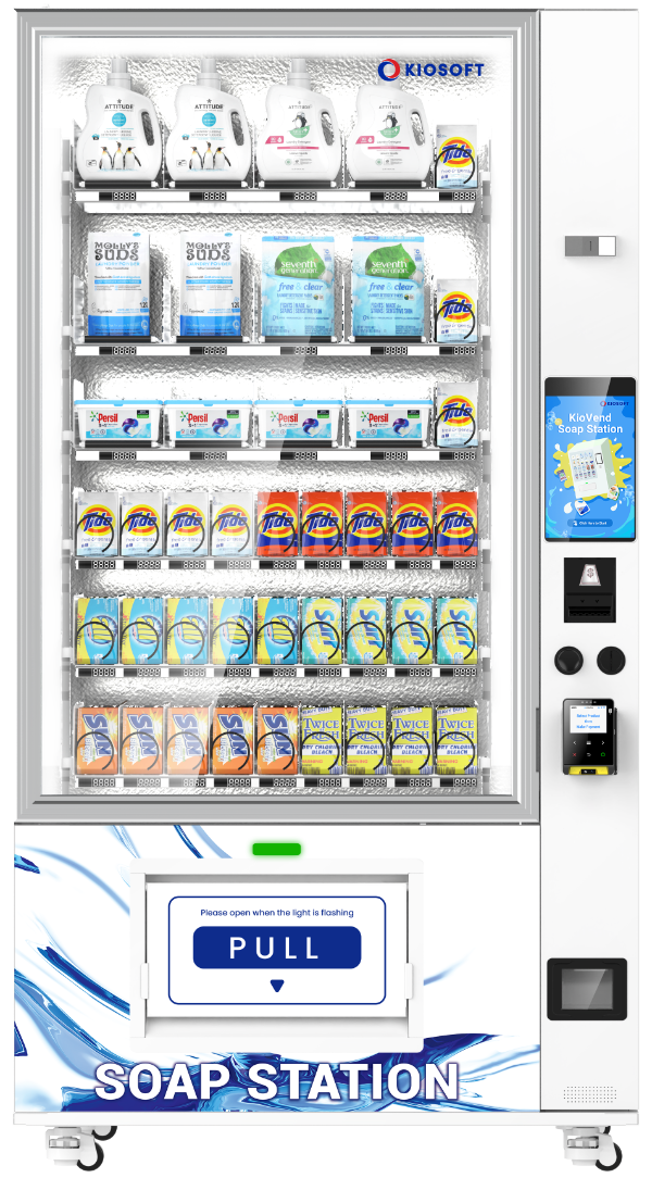 Elevate your laundromat with the KioSoft Soap Station Prime. This elevator-dispensing vending solution offers unparalleled convenience and capacity, catering to all your customers' laundry needs.